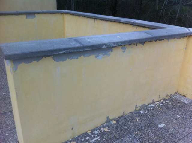 Ieri l’altro sono andato al cimitero e per la prima volta sono entrato dall’alto nella nuova costruzione da poco realizzata. Le foto fanno vedere benissimo in che stato è già. L’intonaco, la parte superficiale e quindi la pittura si sta staccando tutta.