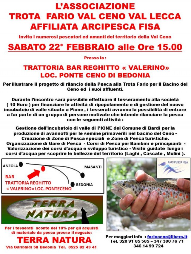 Invita i numerosi pescatori ed amanti del territorio della Val Ceno