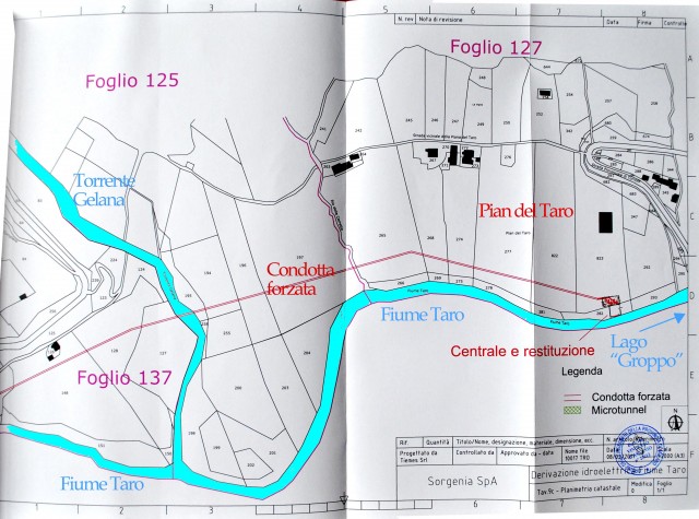 Sarebbe interessante sapere qual'è la portata del fiume nei diversi mesi dell'anno e quali possono essere le variazione per esempio sul laghetto del Groppo? Inoltre bisognerebbe sapere i 2.5km di condotta come vengono realizzati e quale impatto forniscono all'ambiente circostante? E' stato fatto uno studio ambientale? Il progetto deve andare in conferenza dei servizi? Saluti |